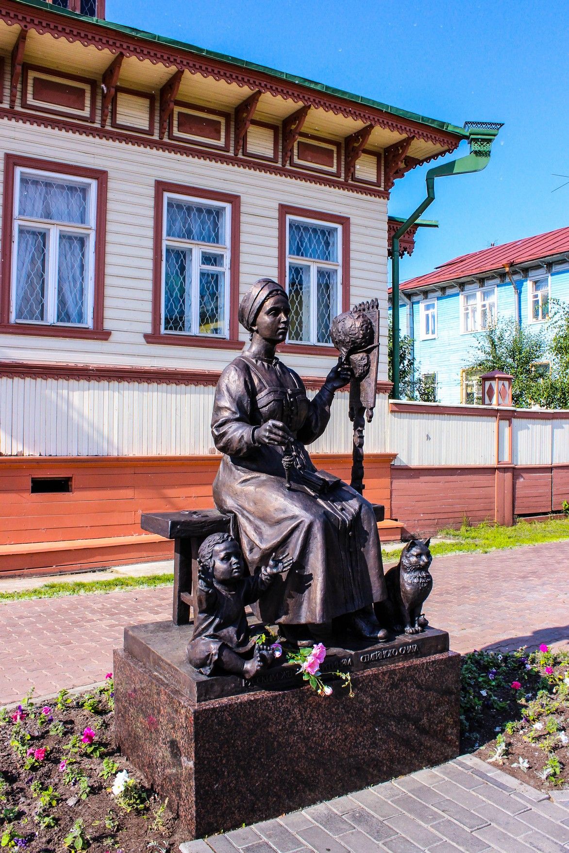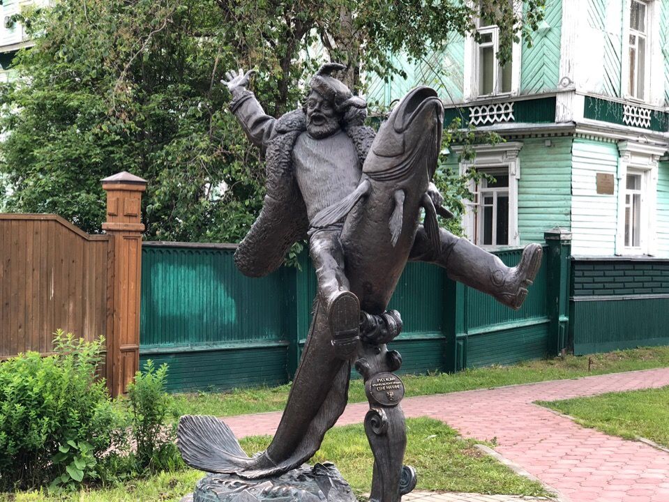 In addition to architectural monuments on Chumbarov-Luchinsky Avenue, there is the Museum of the Arkhangelsk gingerbread kozulya, the visit center of the Malye Korely Museum in the House of the Commercial Assembly, the Pomor Artel cultural center, the literature museum, as well as the monuments to the northern writers Stepan Pisakhov and Boris Shergin, captured in the middle of creating the next epigram to Kozma Prutkov riding a huge burbot, to the Pomor peasant Senya Malina.