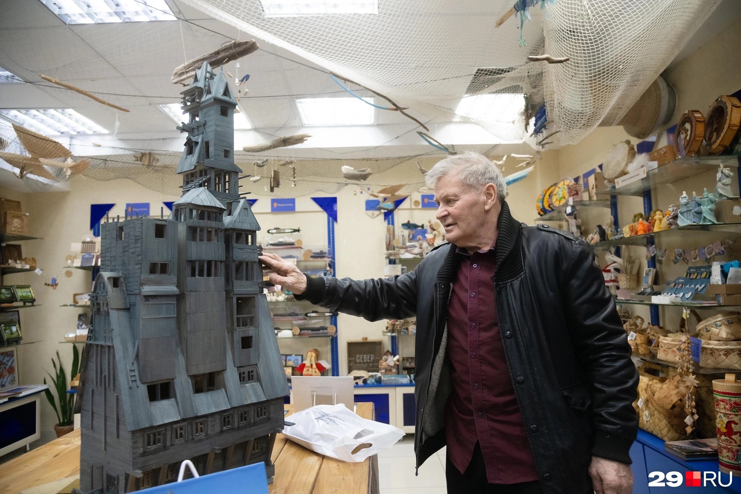 В сувенирном магазине «Птица счастья» появился арт-объект, посвященный легендарному дому Сутягина. Уникальный экспонат, созданный народным мастером Анатолием Галушиным, выполнен в масштабе 1:32 с потрясающей детализацией. Для создания арт-объекта были использованы традиционные породы дерева — сосна и ель, что позволило максимально точно передать фактуру и характер оригинального строения.