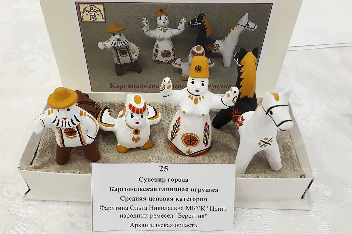 Архангельская область была представлена знаменитой каргопольской глиняной игрушкой. Сувенир из Каргополя представляла народный мастер России Ольга Фарутина. Набор каргопольской глиняной игрушки «Древние образы Каргопольской глиняной игрушки» занял 1 место в номинации «Идея туристического сувенира» (средняя ценовая категория).