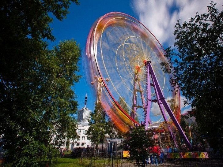 Колесо обозрения расположено в самом центре Архангельске в парке аттракционов «Потешный двор» и хорошо видно даже издалека. С высоты птичьего полета открывается великолепная панорама центра Архангельска и захватывающий вид на просторы Северной Двины. Посетители могут расположиться в закрытых или открытых кабинках. Аттракцион имеет комфортные и безопасные четырехместные кабинки, четырехместные открытые кабинки и двухместные экстремальные кабинки для самых смелых гостей. Высота колеса обозрения составляет 27,5 метров.