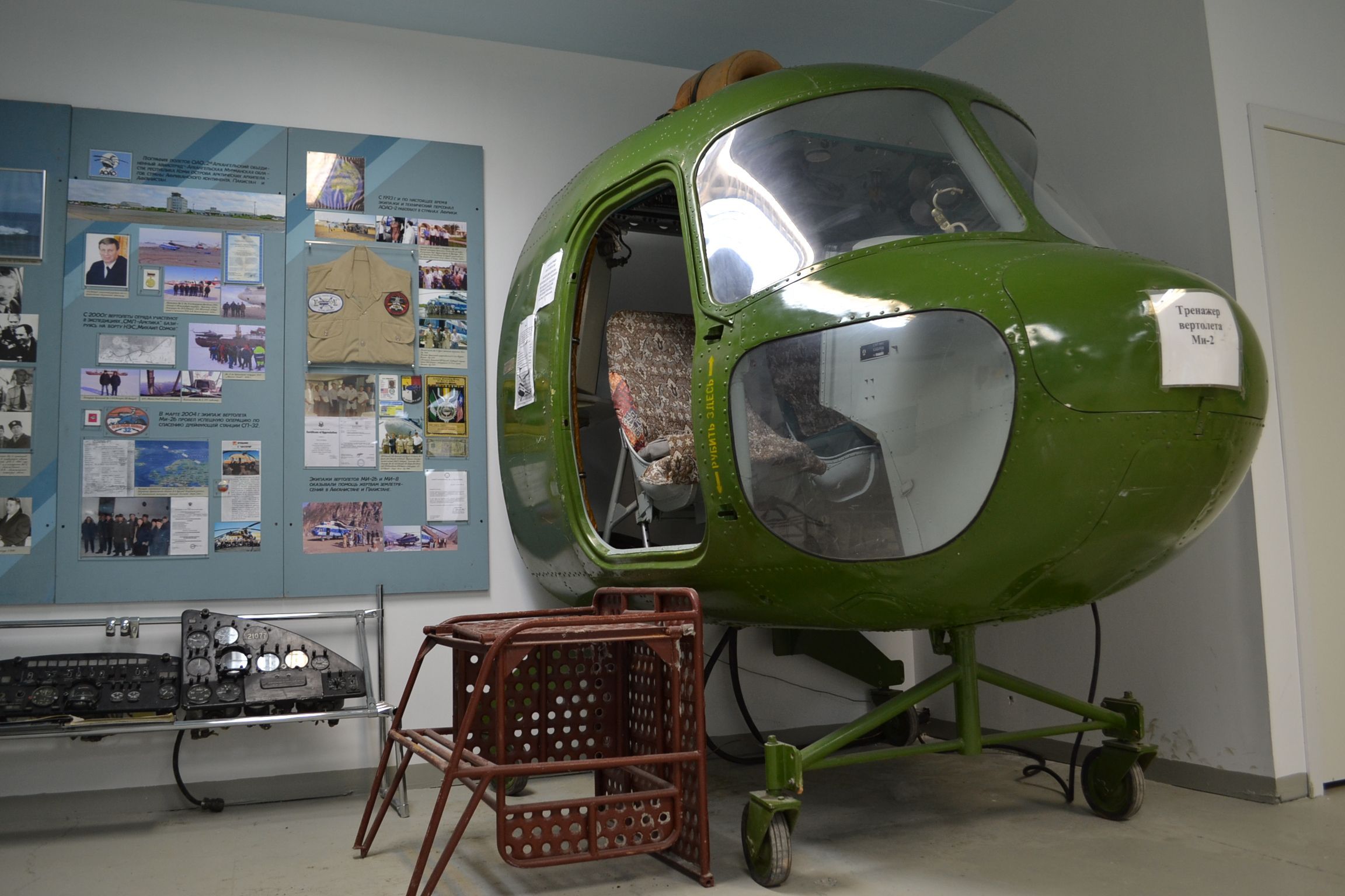 Основная экспозиция сочетает в себе интересные экспонаты, подробную информацию и интерактив — кабину тренажера вертолета Ми-2.